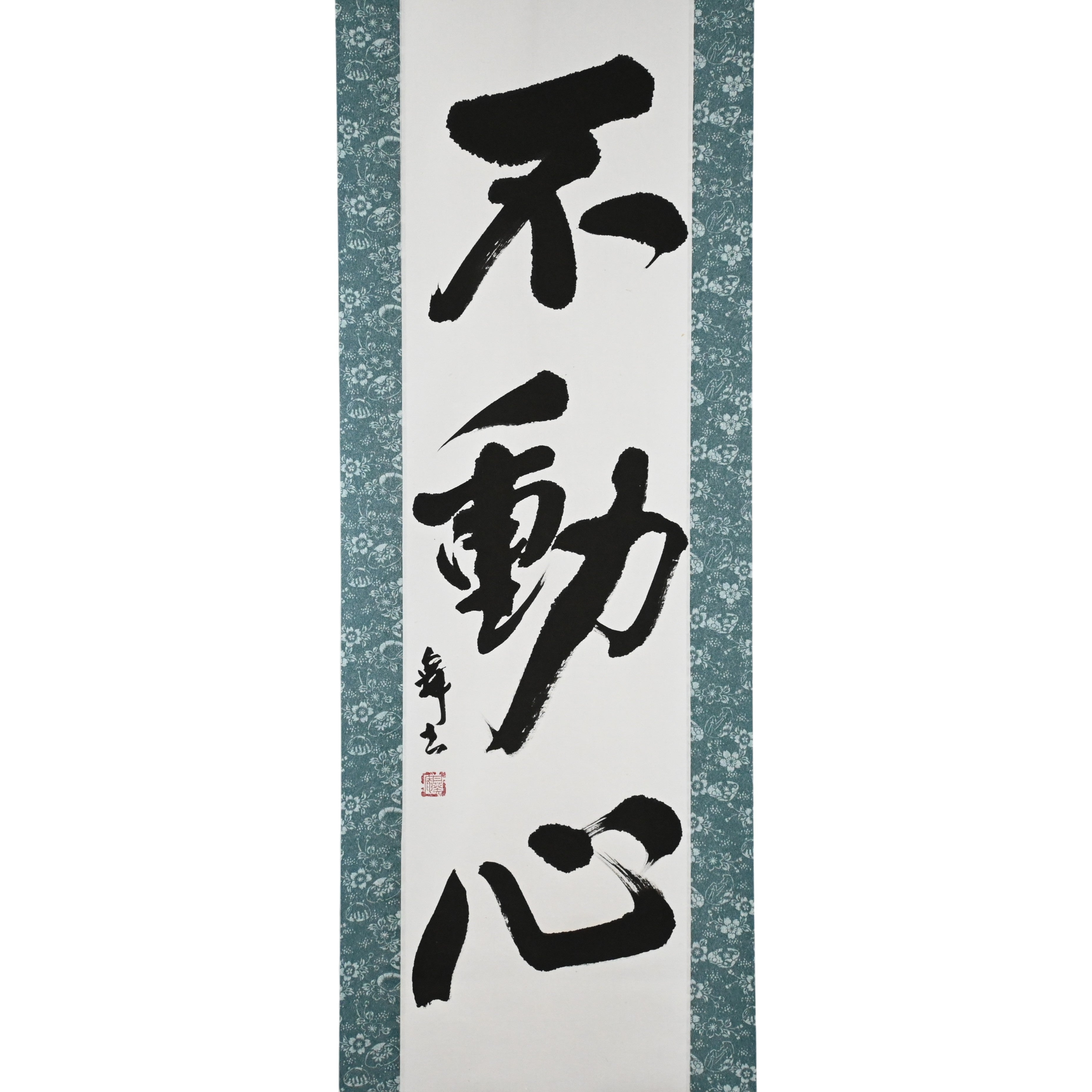 This calligraphy scroll features the profound concept of 不動心 (Fudōshin) — "the immovable mind". It represents a calm, centered state of being that remains unshaken by fear, anger, or doubt. In martial arts and the way of the Samurai, Fudōshin is considered essential to true mastery.