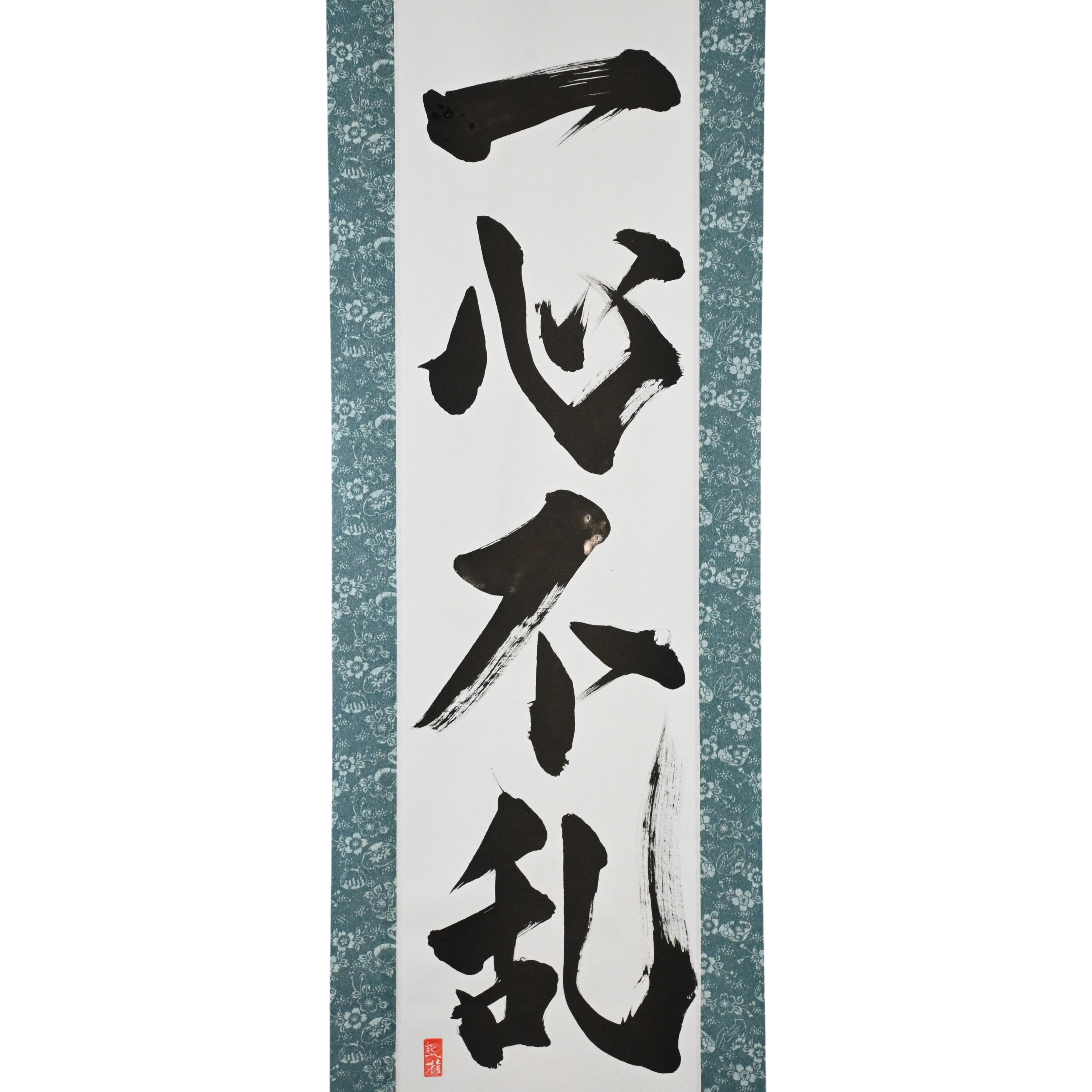 This Japanese calligraphy scroll showcases the powerful phrase 一心不乱 (Isshin Furan), meaning “undivided focus” or “with single-minded devotion”. It captures the essential mindset of martial arts — the ability to eliminate distractions and commit wholly to the moment.