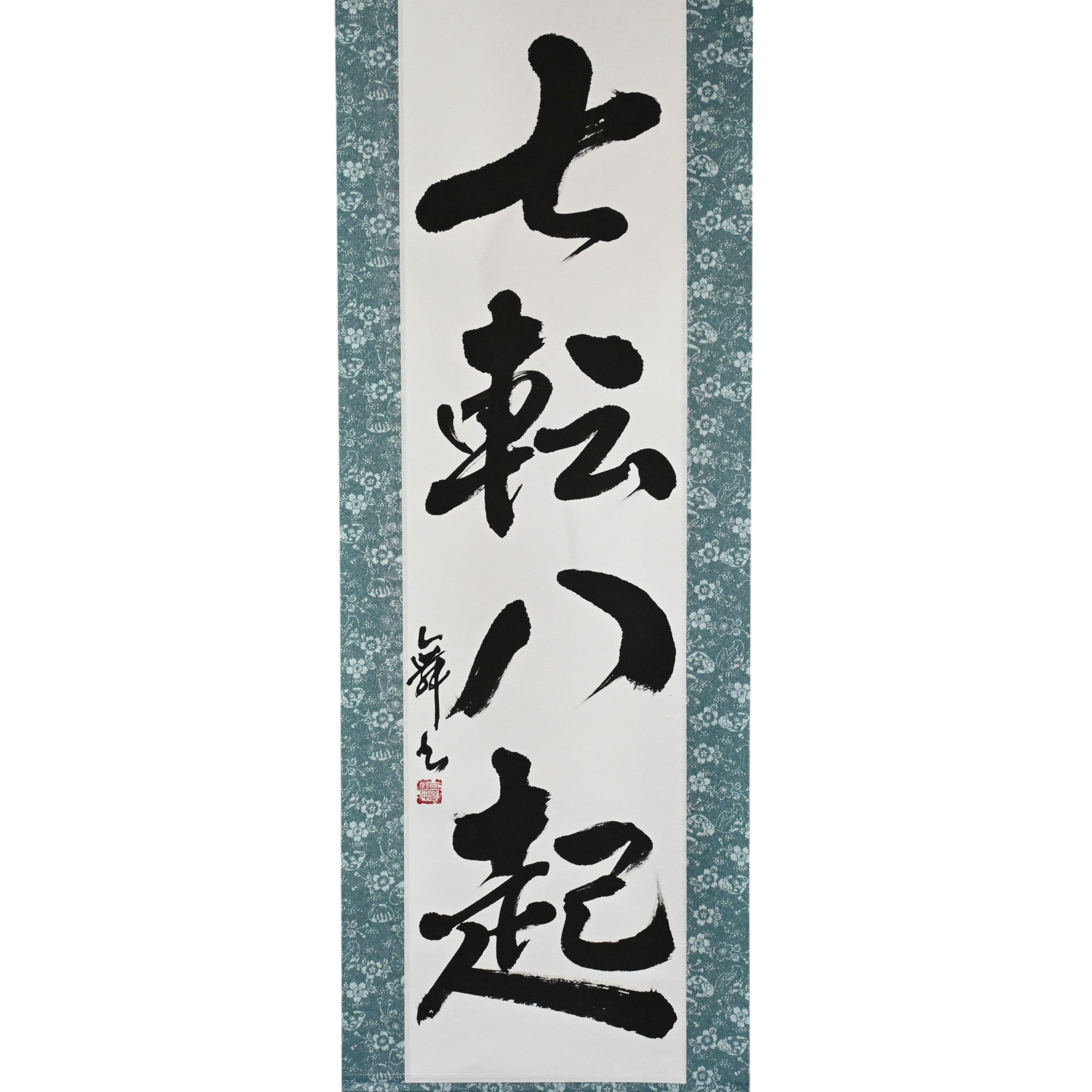 This Japanese calligraphy scroll features the powerful phrase 七転八起 (Shichiten Hakki) — meaning "Fall seven times, rise eight". It embodies the indomitable spirit of the samurai: the unwavering resolve to rise again, no matter how many times life knocks you down.