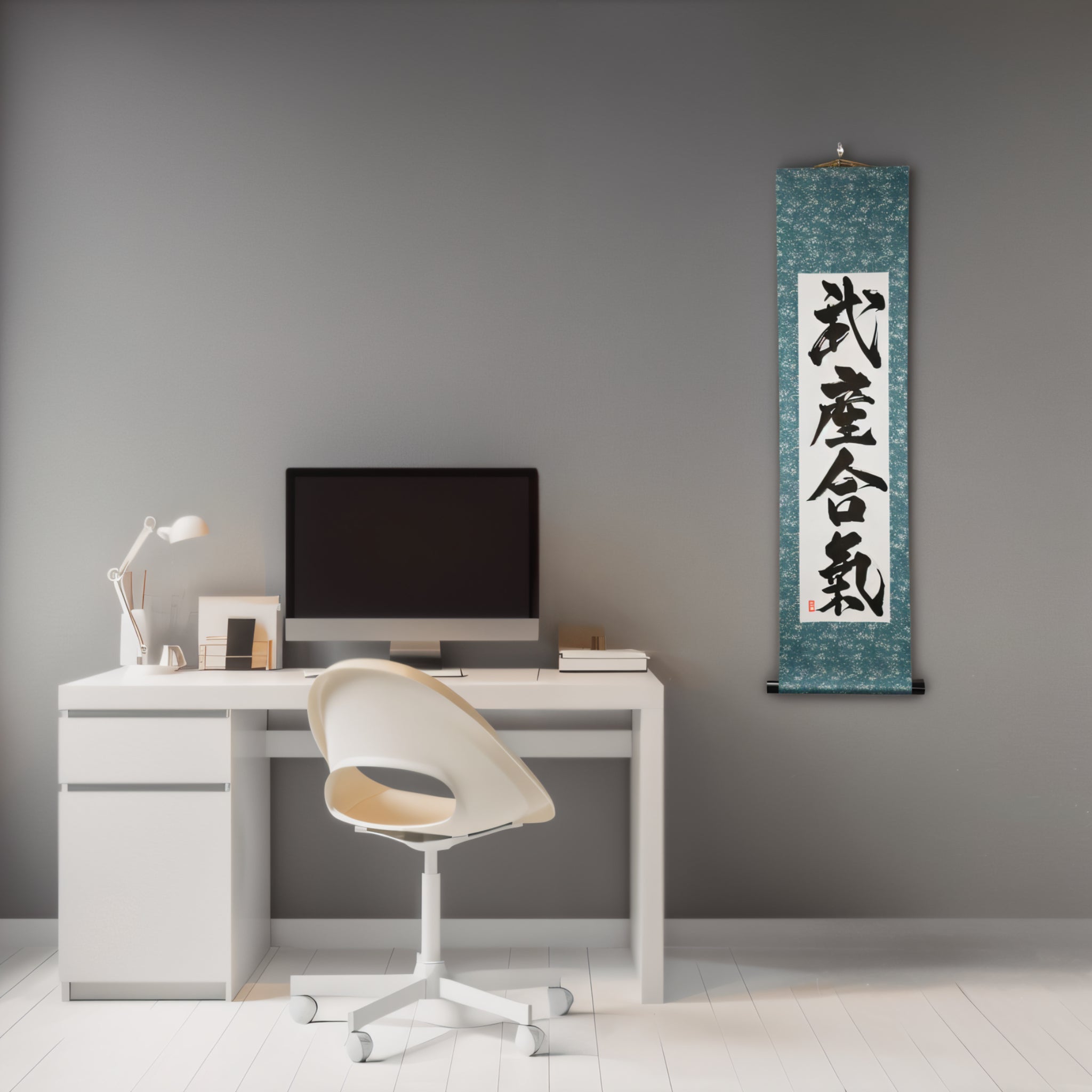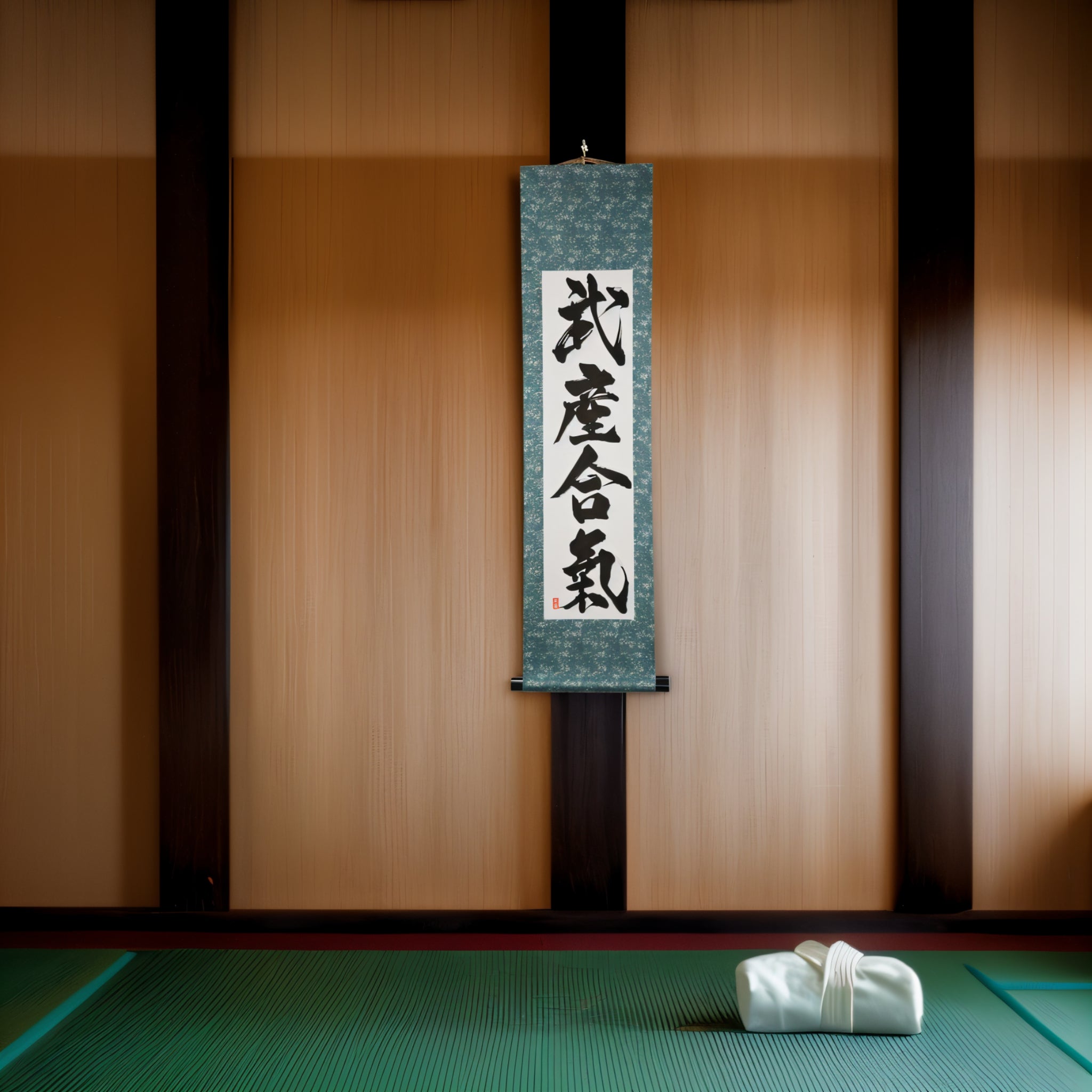 This scroll serves as a spiritual anchor and inspiration — a reminder that the ultimate path of Aikido lies not only in mastery of form, but in the birth of harmony through martial spirit.
