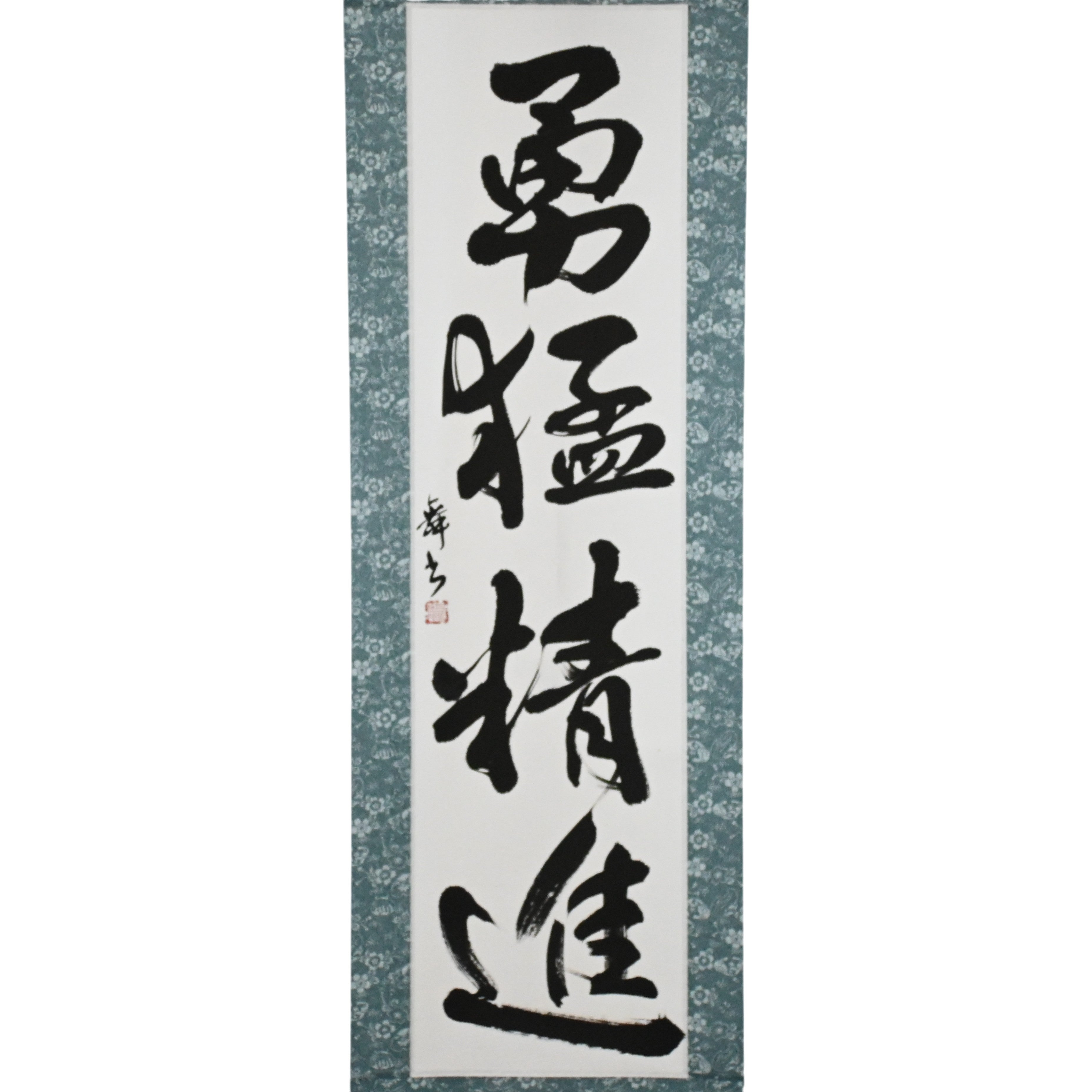 This Japanese calligraphy scroll features the powerful phrase 勇猛精進 (Yūmō Shōjin) — expressing courageous action and disciplined perseverance. Deeply rooted in the way of the Samurai, it reflects a Samurai’s resolve to face adversity without fear and to devote themselves fully to self-cultivation.